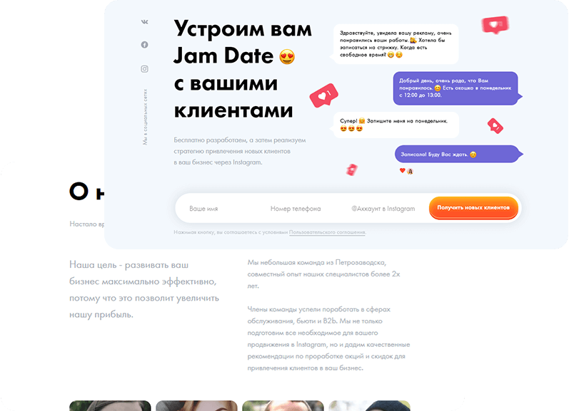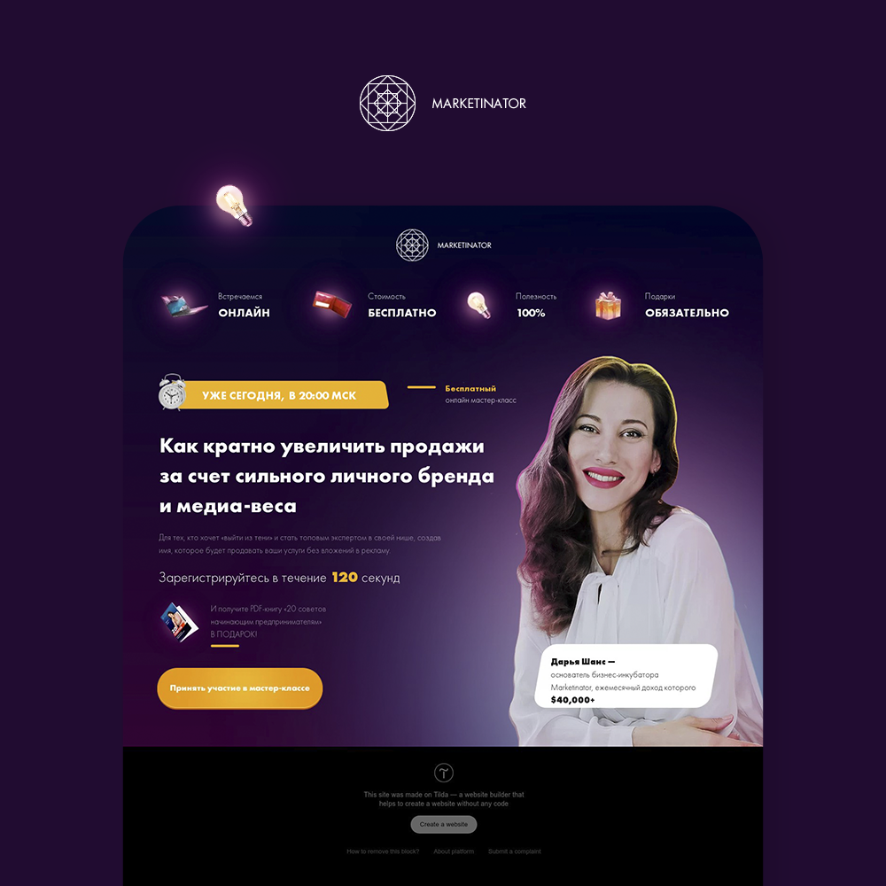 Я полностью погружаюсь в проект, опыт работы маркетологом, верстальщиком и дизайнером позволяет мне максимально эффективно решить задачу, которая стоит перед вашим лендингом.